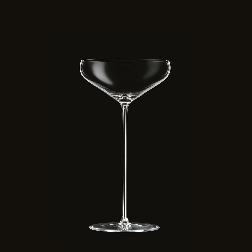 クラシックなシャンパンソーサーにモダンな要素を加え、繊細さとエレガントさを持ち合わせた木村硝子店のクープ型グラスです。