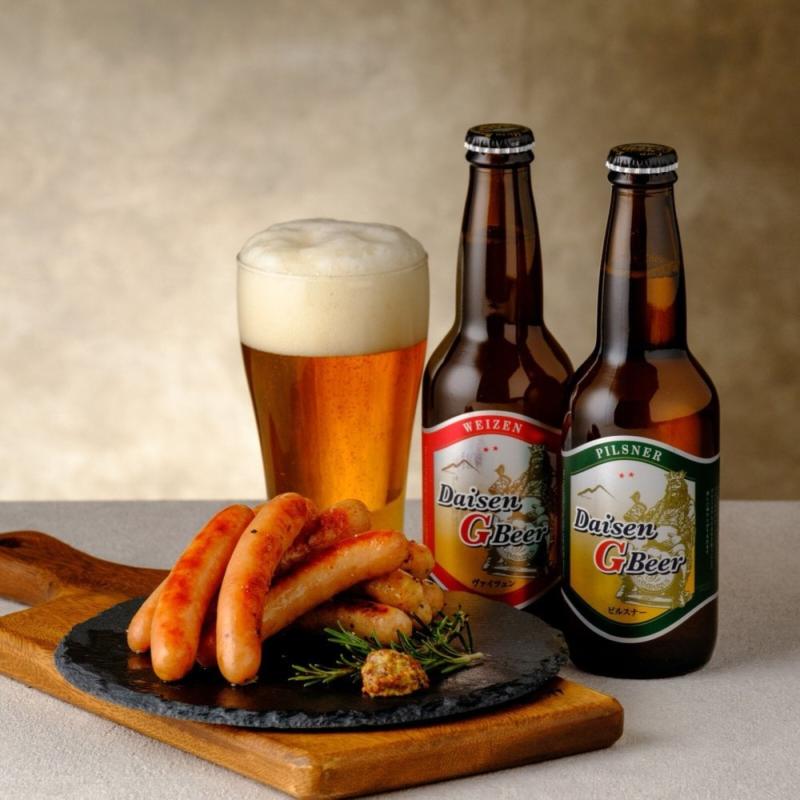 大山Gビールのヴァイツェンとピルスナーに、大山どり使用のオリジナルソーセージ2種を詰め合わせた贅沢なセットです。